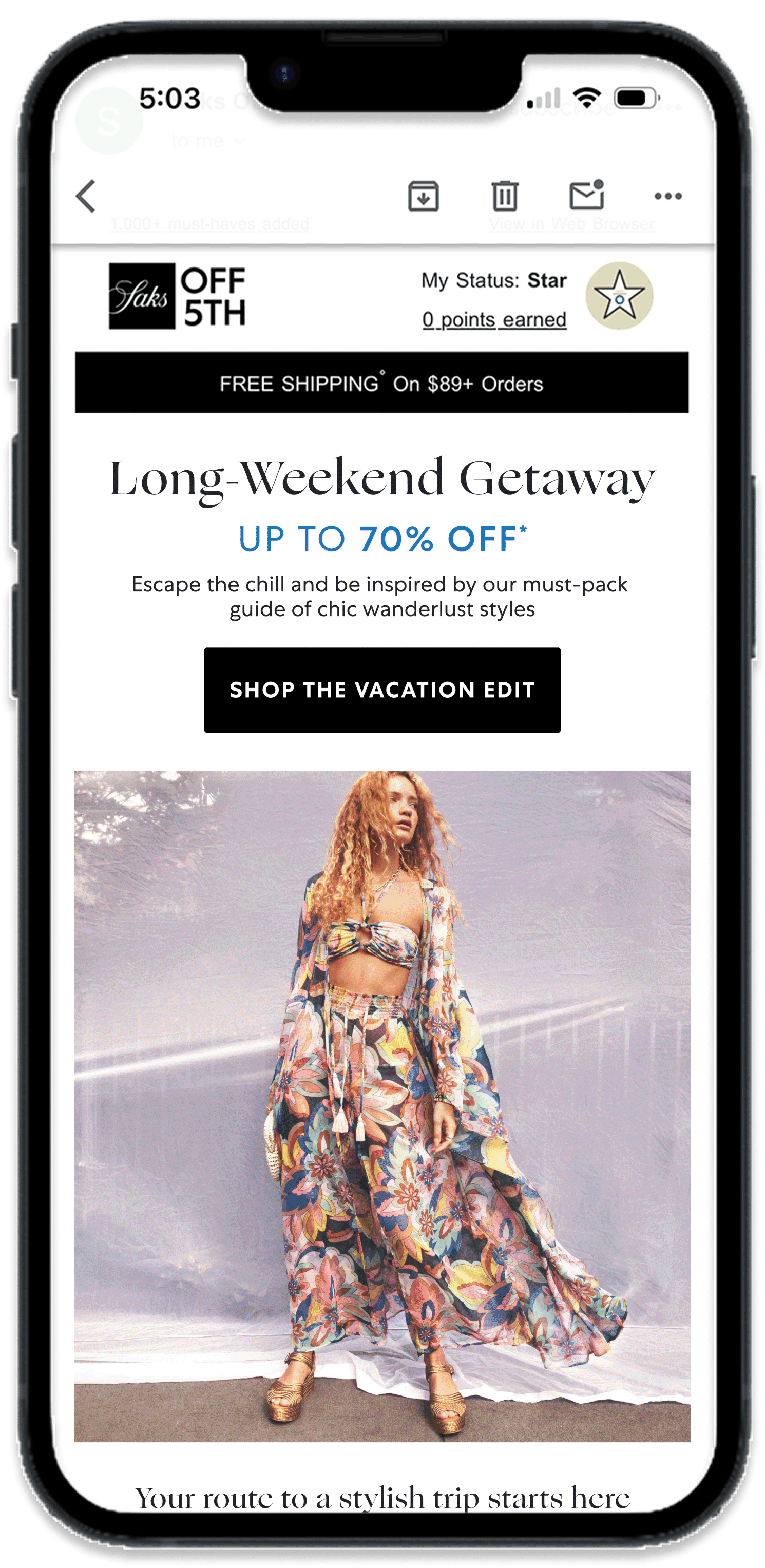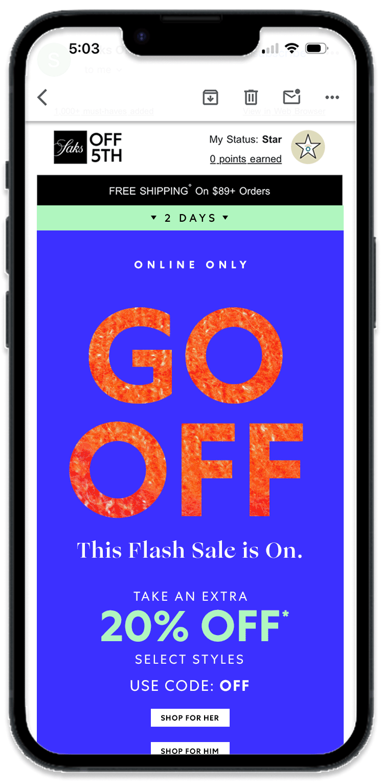 Saks OFF 5TH, Loyalty Sitewide Promotion